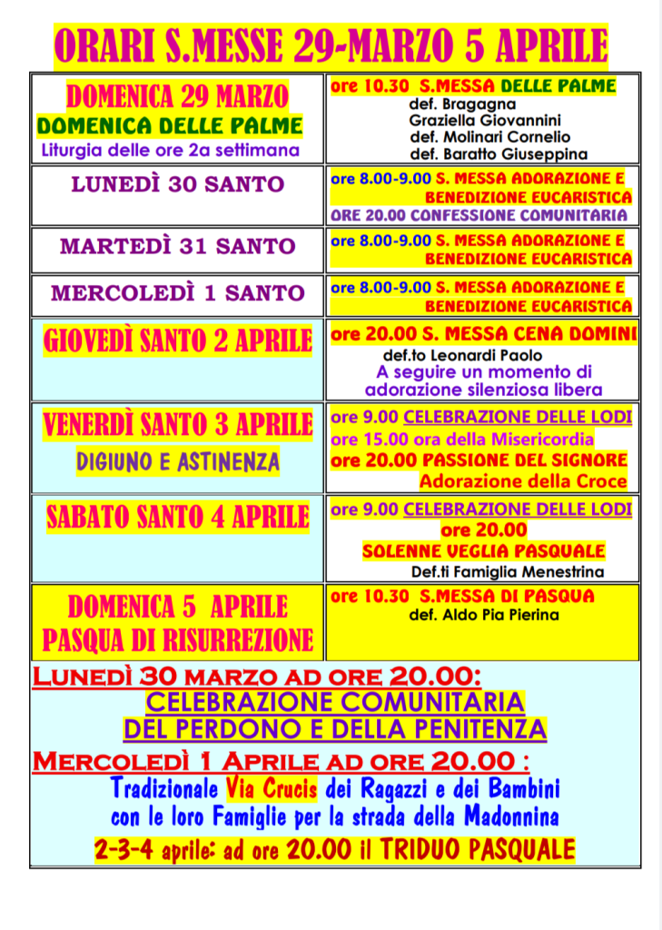 Orari messe 29 marzo-5 aprile – Civezzano Pubblicato il 30 Marzo 2026 Condividi:Facebook0TwitterWhatsapp