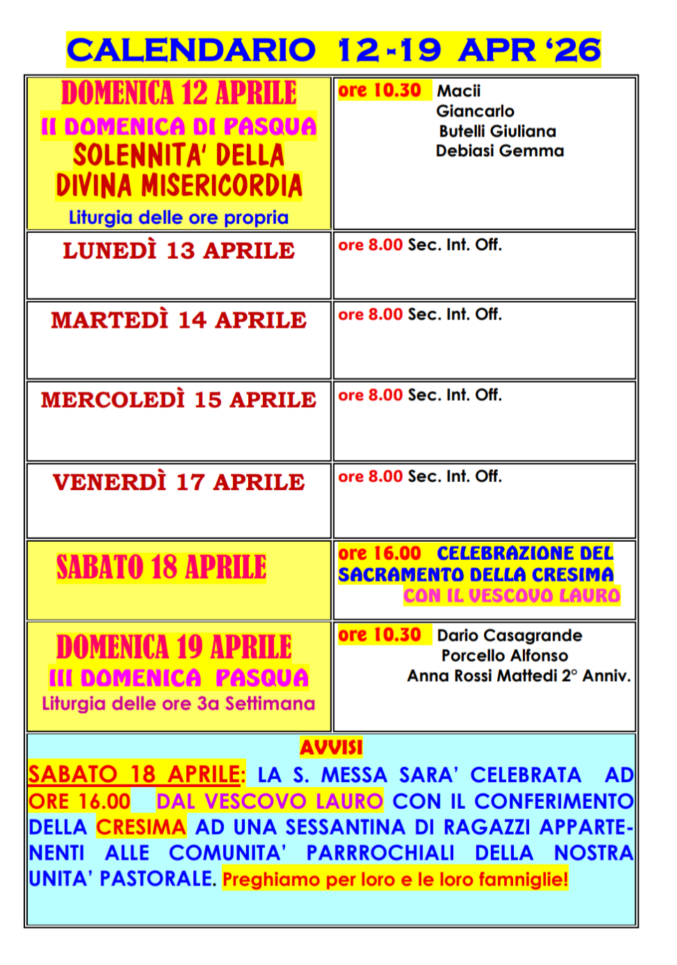 Orari celebrazioni 12-19 aprile – Civezzano Pubblicato il 11 Aprile 2026 Condividi:Facebook0TwitterWhatsapp